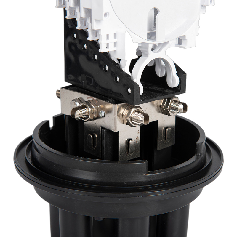 يتضمن إغلاق وصلة الألياف الضوئية GSGSC107 مشتتًا حراريًا للمساعدة في تنظيم درجة الحرارة داخل الصندوق، مما يمنع ارتفاع درجة الحرارة ويضمن الأداء الأمثل. تتميز القاعدة السوداء بمنافذ متعددة لسهولة دخول الكابل وخروجه، مما يوفر نقاط اتصال آمنة ومنظمة لكابلات الألياف الضوئية.